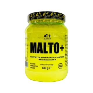 4+ Nutrition Malto D+ 600 g – angliavandenių papildas, pagamintas maltodekstrino pagrindu, skirtas sportuojantiems ir aktyviai gyvenantiems žmonėms, kuriems reikalingas greitas energijos šaltinis treniruočių metu ir efektyvus atsistatymas po fizinio krūvio. Maltodekstrinas yra greitai pasisavinamas angliavandenis, padedantis papildyti energijos atsargas intensyvaus fizinio krūvio metu.
