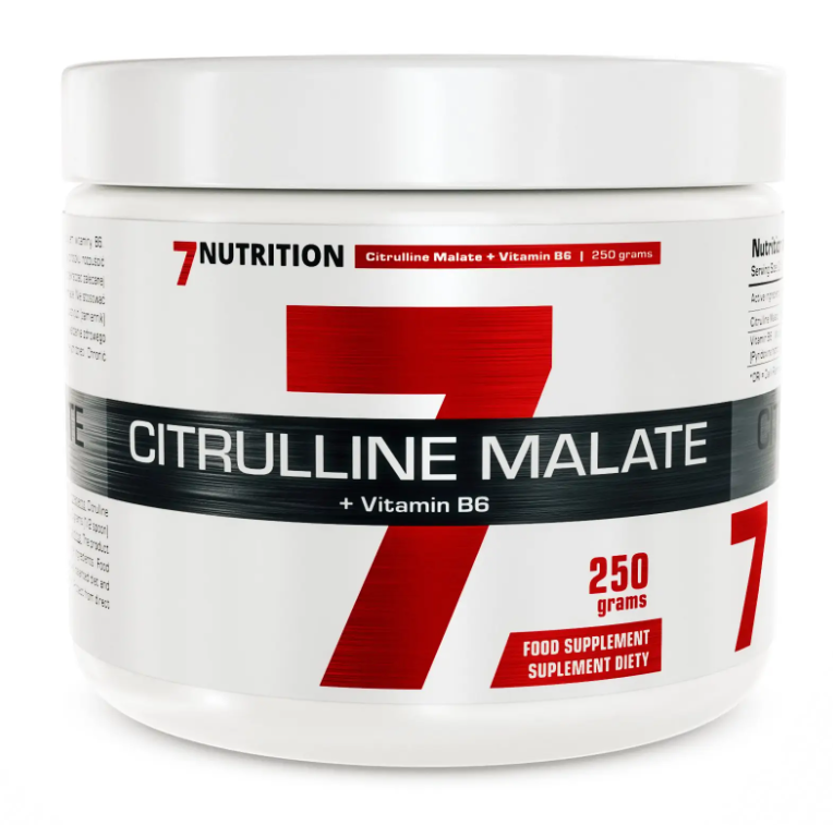 7 Nutrition Citrulline Malate + B6 – aukštos kokybės citrulino malato papildas, skirtas sportuojantiems ir aktyviai gyvenantiems žmonėms, siekiantiems didesnio treniruočių efektyvumo, ištvermės ir geresnio raumenų aprūpinimo krauju. Citrulino malatas plačiai naudojamas sportinėje mityboje dėl savo poveikio fiziniam pajėgumui ir nuovargio mažinimui.
