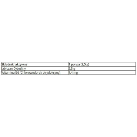 Sudedamosios dalys: citrulino malatas; piridoksino hidrochloridas (Vitaminas B6).