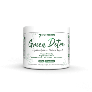 7 Nutrition Green Detox – maisto papildas, skirtas palaikyti normalią virškinimo sistemos veiklą ir žarnyno funkciją. Sudėtyje esantis obuolių pluoštas, jauni miežiai, spirulina, chlorelė ir cikorijų inulinas suteikia skaidulų, augalinių maistinių medžiagų ir antioksidacinių junginių, svarbių kasdieniam organizmo funkcionalumui.