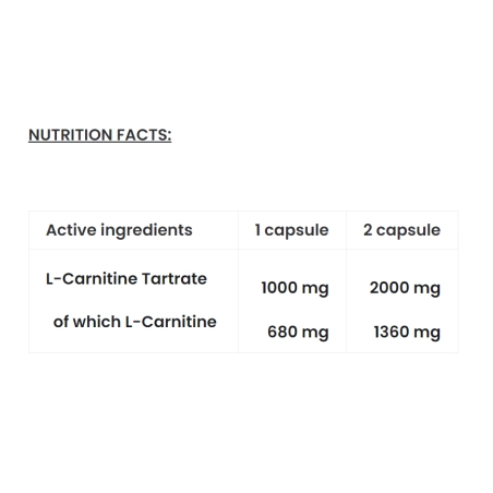 • L-karnitinas padeda pernešti riebalų rūgštis į mitochondrijas, kur jos paverčiamos energija, todėl šis produktas ypač tinkamas aktyviai sportuojantiems žmonėms ir tiems, kurie siekia efektyviau valdyti kūno svorį.