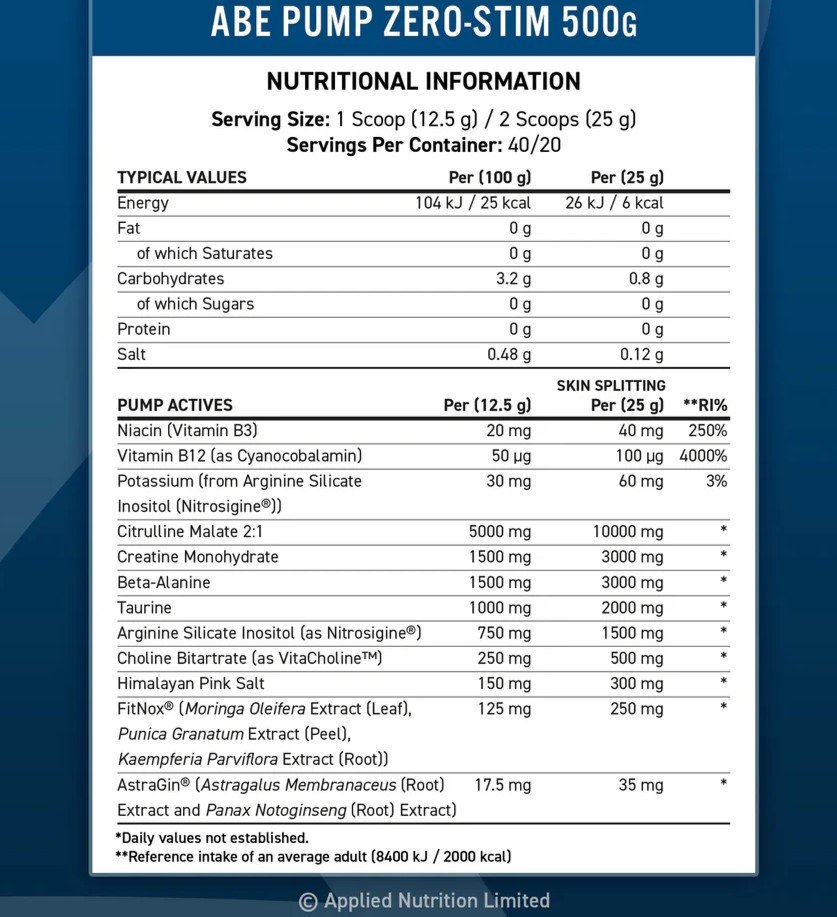 Applied Nutrition ABE PUMP – pažangus prieštreniruotinis papildas be stimuliantų, sukurtas siekiant padidinti treniruotės intensyvumą, pagerinti susikaupimą ir sustiprinti raumenų „pump“ efektą. Dėl formulės be kofeino šis papildas puikiai tinka vakariniams sporto seansams arba tiems, kurie vengia stimuliuojančių medžiagų.