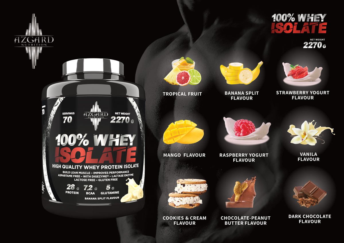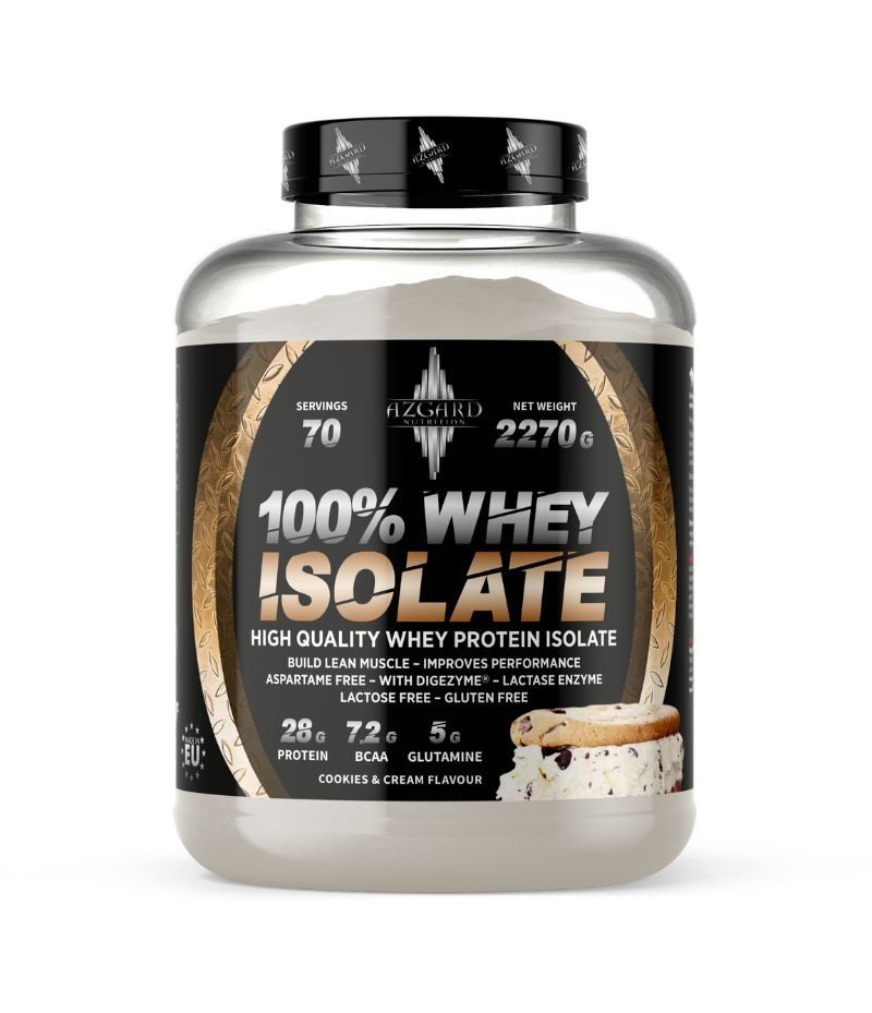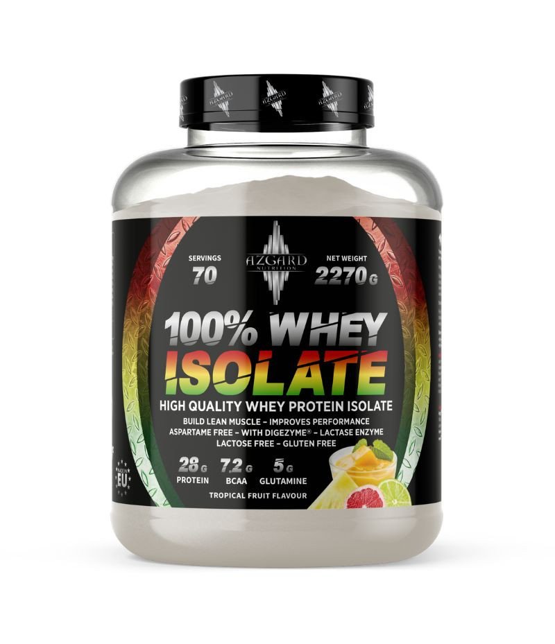 Azgard 100% Whey Isolate – greitai įsisavinamas išrūgų baltymų izoliatas, skirtas raumenų atsistatymui ir augimui po treniruočių. Formulėje beveik nėra cukraus ir riebalų, o viena porcija suteikia net 28 g baltymų, todėl produktas tinka sportuojantiems ir aktyviai gyvenantiems žmonėms.