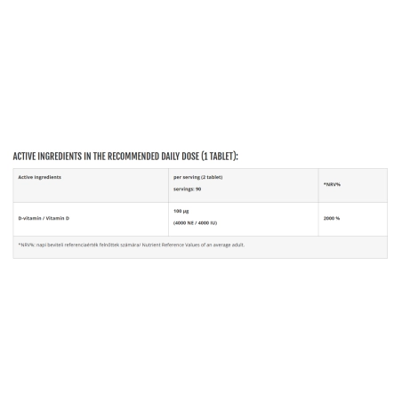 Vitaminas D3 prisideda prie normalios imuninės sistemos veiklos, raumenų funkcijos ir kalcio pasisavinimo. Reguliarus vartojimas padeda palaikyti kaulų stiprumą, bendrą savijautą bei organizmo atsparumą, ypač aktyvaus gyvenimo laikotarpiu.