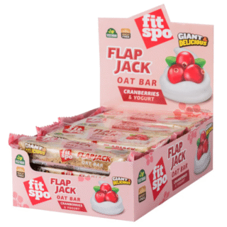 FitSpo Flap Jack Cranberries and Yogurt – sotus energijos batonėlis, pagamintas iš avižinių dribsnių, džiovintų spanguolių ir jogurto skonio sluoksnio. Gaivus spanguolių rūgštumas dera su švelniu jogurto skoniu ir avižų natūraliu profiliu, suteikdamas ilgalaikį sotumo jausmą bei tolygų energijos išsiskyrimą. Batonėlis tinka kaip greitas užkandis darbo metu, kelionėje ar po fizinio krūvio, kai reikia papildyti energijos atsargas.