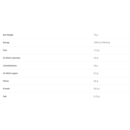 • Aukštos kokybės baltymai padeda palaikyti ir atkurti raumenų masę po fizinio krūvio, o subalansuota sudėtis suteikia ilgalaikės energijos.