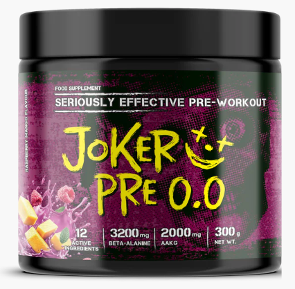 JOKER 0.0 Pre-Workout – tai galingas prieštreniruotinis kompleksas, sukurtas suteikti sprogstamos energijos, maksimalaus susikaupimo ir ištvermės kiekvienai treniruotei. Jis padeda organizmui greitai įsijungti į darbo ritmą, palaiko intensyvumą nuo pirmos iki paskutinės minutės ir suteikia papildomą motyvaciją pasiekti geriausius rezultatus.