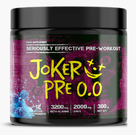 • Joker Pre 0.0 – subalansuotas prieštreniruotinis papildas, padedantis išlaikyti aukštą energijos lygį ir susikaupimą natūraliu būdu.