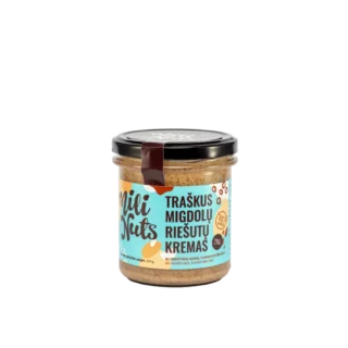Mili Nuts Traškus migdolų riešutų kremas – skanus ir maistingas kremas, pagamintas iš aukščiausios kokybės migdolų, papildytas traškiais migdolų gabalėliais, suteikiančiais išskirtinį tekstūrinį kontrastą. Subtilus migdolų skonis ir malonus traškumas puikiai dera tarpusavyje, todėl kremas tinka tepti ant duonos, blynų ar skrebučių, gardinti desertus arba mėgautis kaip užkandžiu bet kuriuo paros metu.