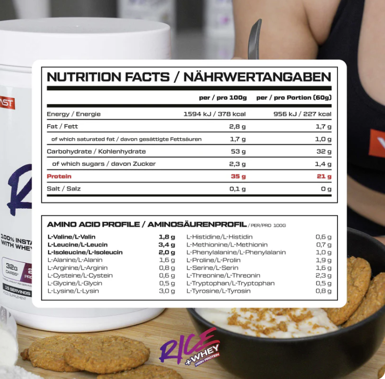 VAST Rice + Whey – tai inovatyvus maistinis produktas, derinantis lengvai virškinamą ryžių miltų bazę su aukštos kokybės pieniško whey baltymo koncentratu. Šis derinys suteikia ilgalaikę energiją, puikų baltymų kiekį ir patogų vartojimą jūsų aktyviam gyvenimo būdui.